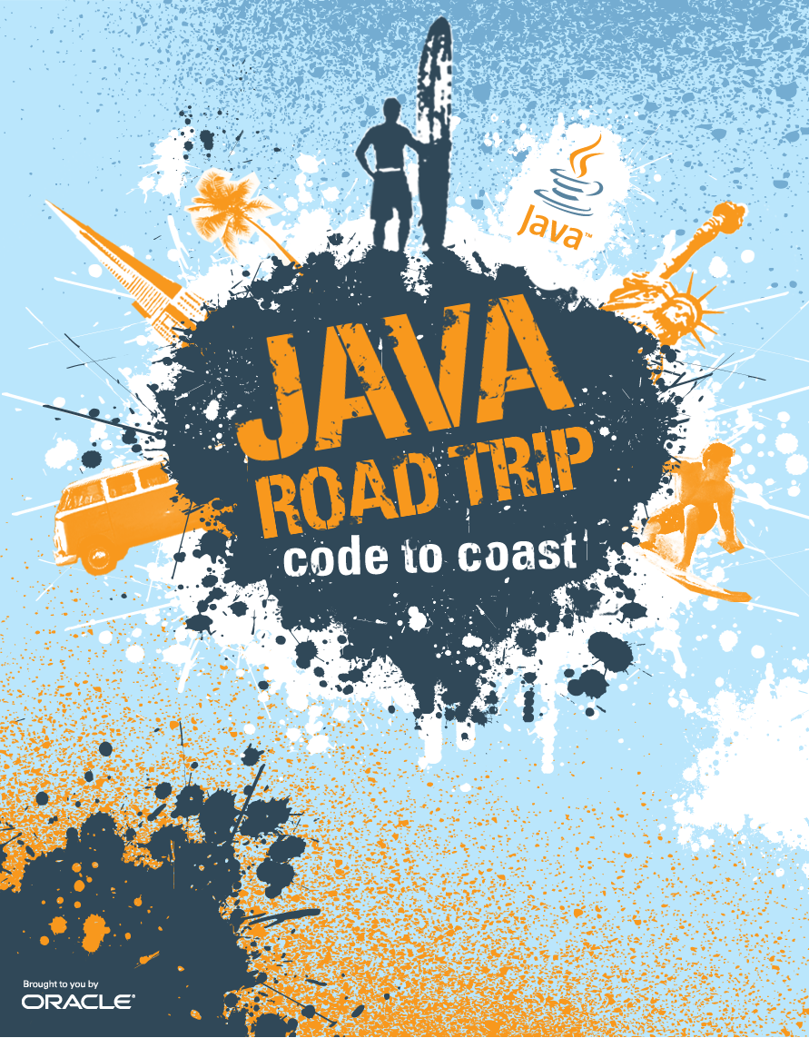As a Senior Designer for Oracle's Brand & Creative Department I was asked to develop the Visual Identity concepts for the Java Bus campaign, which was supposed to target a younger audience and have Californian Surf theme using the Java brand color palette. The Identity would then be applied to all Java Bus related materials from web banners to bus wraps.